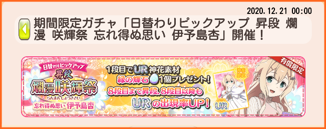 本日12月21日0時から 日替わりpu 爛漫 咲輝祭 忘れ得ぬ思い 伊予島杏 が開催 有償限定の昇段版も開催 ゆゆゆいメモ帳